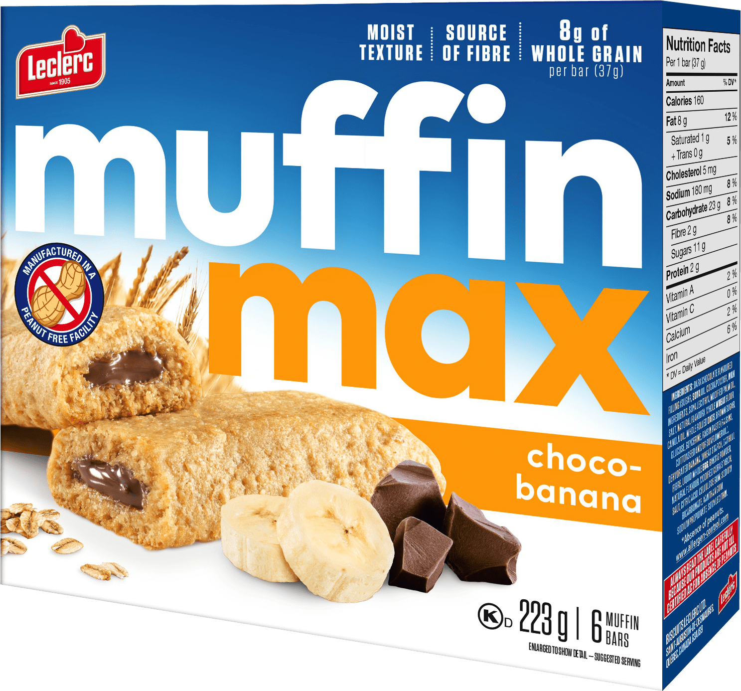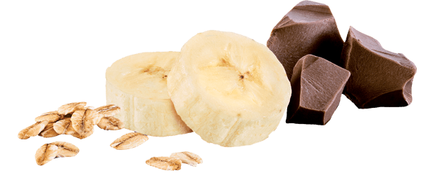 GARNITURE À SAVEUR DE CHOCOLAT NOIR (SUCRE, HUILE DE SOYA, POUDRE DE CACAO, SUBSTANCES LAITIÈRES, LÉCITHINE DE SOYA, HUILE DE PALME MODIFIÉE, SEL, ARÔME NATUREL), FARINE DE BLÉ ENTIER, HUILE DE CANOLA, FLOCONS D'AVOINE ENTIÈRE, CASSONADE, GLUCOSE, GLYCÉRINE, PÂTE DE RAISINS SECS (RAISINS SECS, HUILE DE COTON ET/OU DE TOURNESOL), BANANES DÉSHYDRATÉES, AMIDON DE BLÉ, FIBRES DE BALLE D'AVOINE, OEUF ENTIER LIQUIDE, POUDRE À PÂTE, ARÔME NATUREL, AMIDON DE MAÏS MODIFIÉ, SEL, ACIDE CITRIQUE, GOMME DE CELLULOSE, BICARBONATE DE SODIUM, GOMME DE XANTHANE, PROPIONATE DE SODIUM, LÉCITHINE DE SOYA.