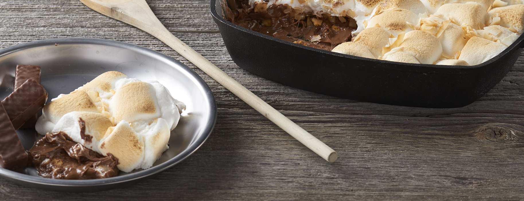 Couvrir et placer la casserole au dessus du gril à feu moyen ou sur une grille au-dessus d’un feu de camp pendant 5 à 10 minutes ou jusqu’à ce que le mélange soit complètement fondu et que les guimauves soient dorées.